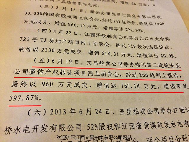5月19日,江西省產(chǎn)權(quán)交易所2014年會(huì)員大會(huì)在南昌召開。省發(fā)改委、省國(guó)資委領(lǐng)導(dǎo)出席會(huì)議并講話,省產(chǎn)交所各辦事處及會(huì)員單位代表共計(jì)80余人參加了會(huì)議。省產(chǎn)交所常務(wù)副總裁易忠翔在會(huì)上作了工作報(bào)告,文昌拍賣(聯(lián)合產(chǎn)權(quán))舉辦臨川三建整體產(chǎn)權(quán)轉(zhuǎn)讓項(xiàng)目網(wǎng)上拍賣會(huì)獲評(píng)主要案例。