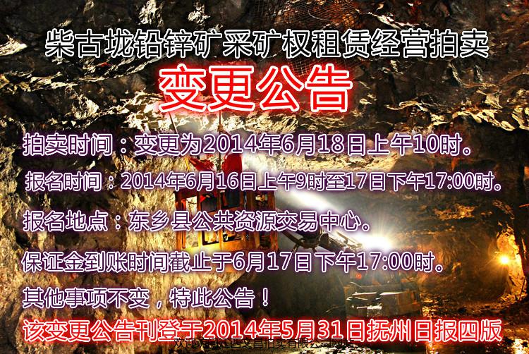 柴古垅鉛鋅礦采礦權(quán)租賃經(jīng)營拍賣變更公告(拍賣時間:6月18日)
