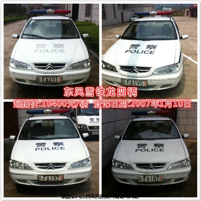 1、東風雪鐵龍共四輛,起拍價10400元/輛,登記日期2007年1月10日;