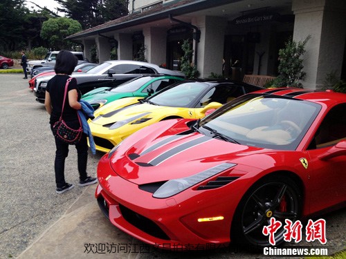 當(dāng)?shù)貢r(shí)間8月17日,美國(guó)加州蒙特雷舉辦經(jīng)典汽車(chē)展,民眾觀看法拉利等名車(chē)。一輛1962年的法拉利跑車(chē)創(chuàng)下3811.5萬(wàn)美元拍賣(mài)記錄。中新社發(fā) 劉丹 攝