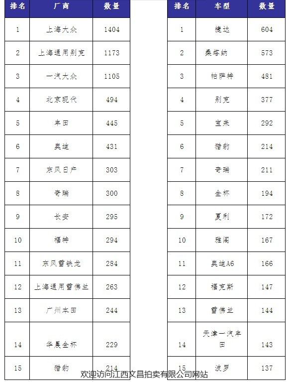 2014年上半年全國(guó)機(jī)動(dòng)車(chē)拍賣(mài)樣本統(tǒng)計(jì)情況綜述